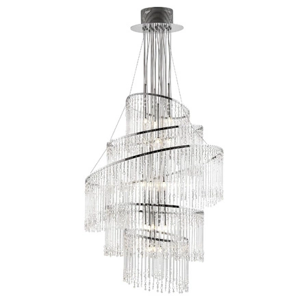 Lampa Wisząca Camille (CAMILLE-24CH) marki Endon to elegancki i stylowy element oświetleniowy, który doskonale wpisuje się w trendy wnętrzarskie. Dzięki swojemu wyjątkowemu designowi, łączy w sobie elegancję stylu Glamour, klasykę i nuty Art Deco, co czyni ją idealnym rozwiązaniem zarówno do nowoczesnych, jak i tradycyjnych aranżacji. Współczesny charakter lampy podkreśla chromowane wykończenie oraz żywe, przezroczyste szkło, które dodaje lekkości i finezji każdemu pomieszczeniu.