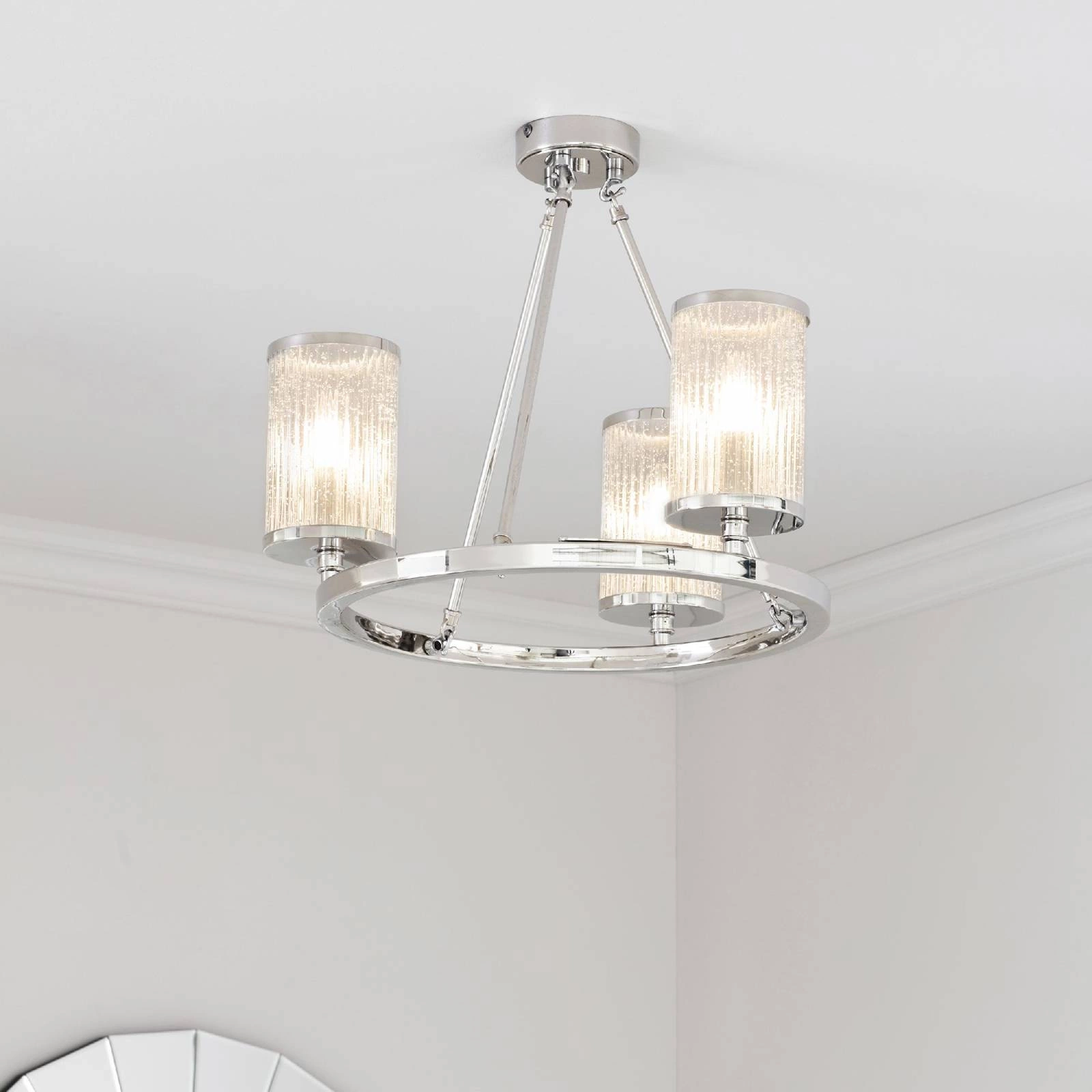 Plafon Easton wyróżnia się niezwykłym połączeniem jasnego niklowanego talerza oraz prążkowanego szkła bąbelkowego, co sprawia, że jego wygląd jest zarówno nowoczesny, jak i klasyczny. Dzięki subtelnym detalom lampa nie tylko oświetli Twoją przestrzeń, ale również stanie się jej stylowym uzupełnieniem, przyciągając wzrok każdego gościa. To idealne rozwiązanie do salonu lub sypialni, gdzie stworzysz przytulną atmosferę.