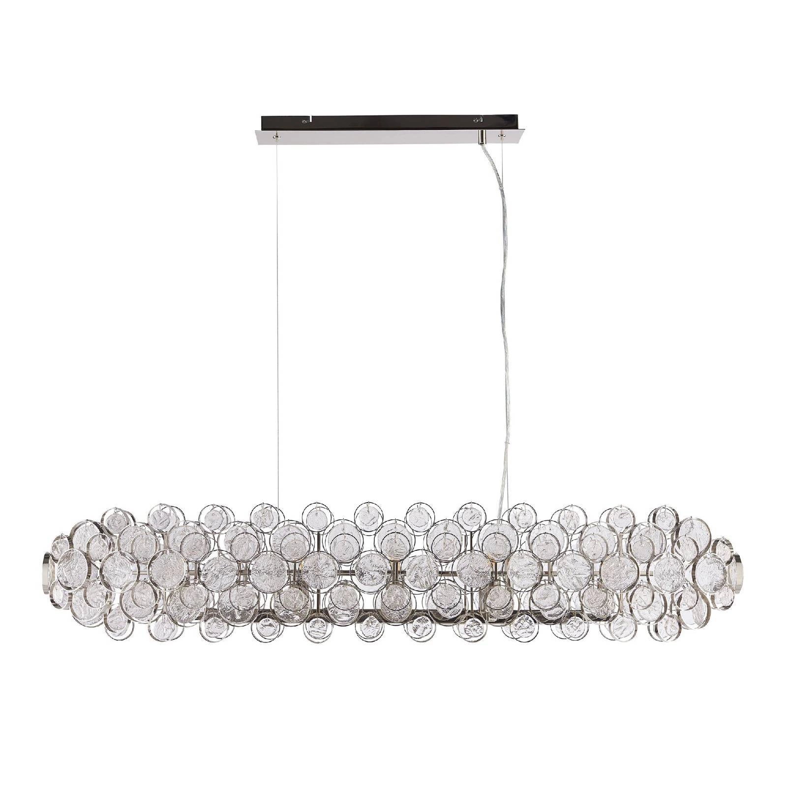 Lampa Wisząca Marella (76507) od marki Endon to elegancka oprawa, która doskonale łączy w sobie nowoczesny design i styl glamour. Dzięki zastosowaniu wysokiej jakości materiałów, takich jak jasny niklowany talerz oraz przezroczyste szkło, staje się ona nie tylko źródłem światła, ale również wyrazistą ozdobą każdego wnętrza. Jej unikalny wygląd sprawia, że idealnie wpasuje się w przestrzenie urządzone w różnych stylach, od nowoczesnych po klasyczne elementy Art Deco.