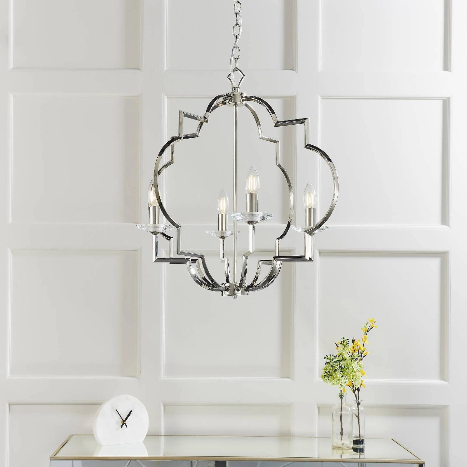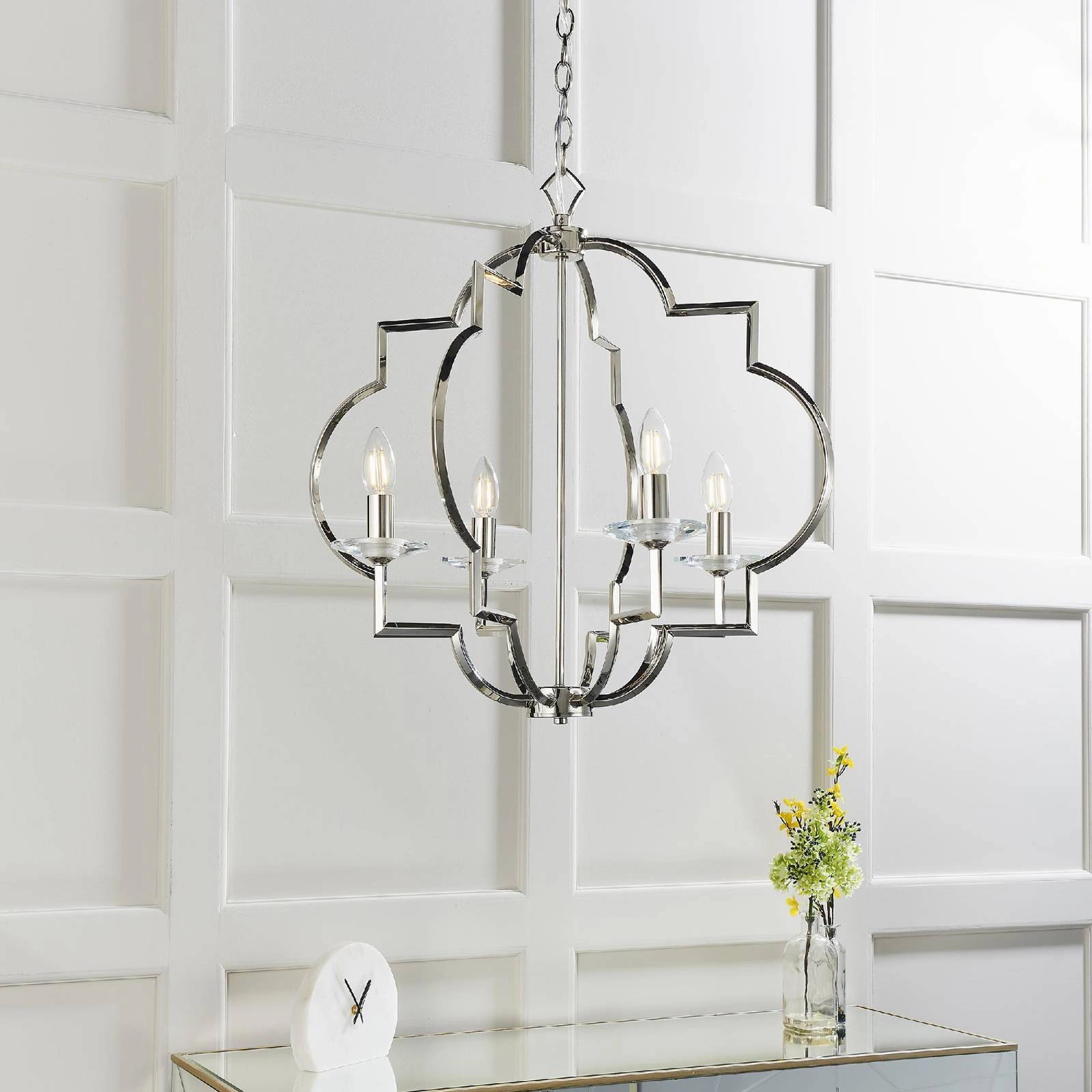 Lampa Wisząca Garland (81915) marki Endon to elegancki element oświetleniowy, który wprowadzi do Twojego wnętrza niepowtarzalny styl i luksus. Została zaprojektowana z myślą o wymagających klientach, którzy cenią sobie wykwintne detale oraz klasyczny design. Jej wyjątkowe połączenie niklu oraz przezroczystego kryształu sprawia, że lampa doskonale wpisuje się w najnowsze trendy Art Deco oraz glamour.