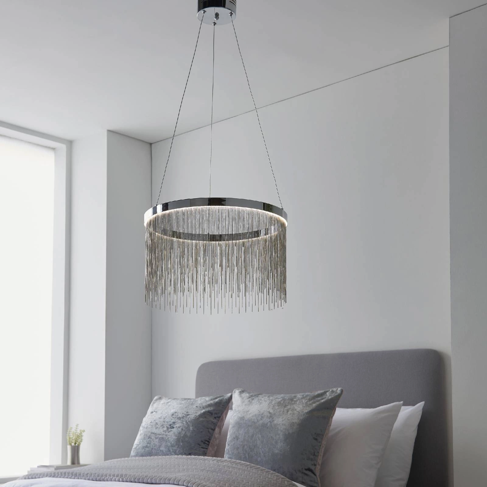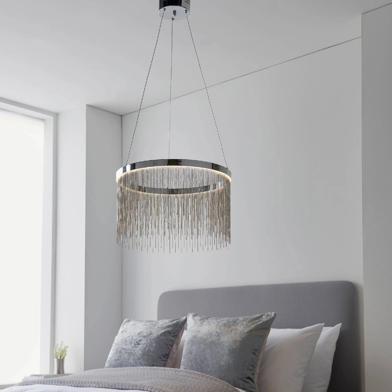 Lampa Wisząca Zelma CCT (97368) od renomowanej marki Endon to połączenie nowoczesności i elegancji, które doskonale wpasuje się w każde wnętrze. Oferując magnetyczny urok stylu Glamour oraz Art Deco, ta lampa stanie się nie tylko praktycznym źródłem światła, ale także interesującym elementem dekoracyjnym. Dzięki chromowanemu wykończeniu oraz efektownemu srebrnemu łańcuszkowi, Zelma CCT bez trudu podkreśli charakter salonu, jadalni czy korytarza.