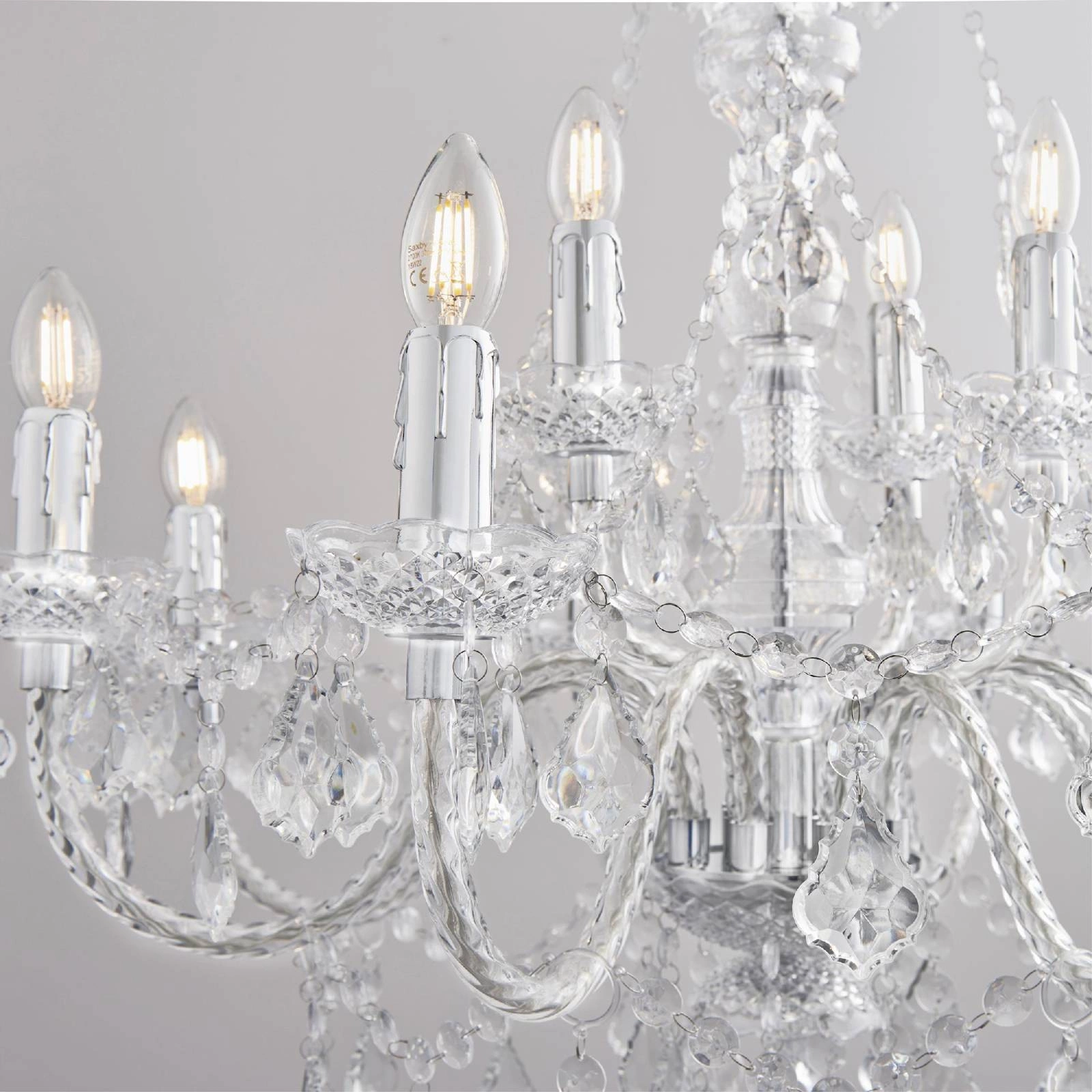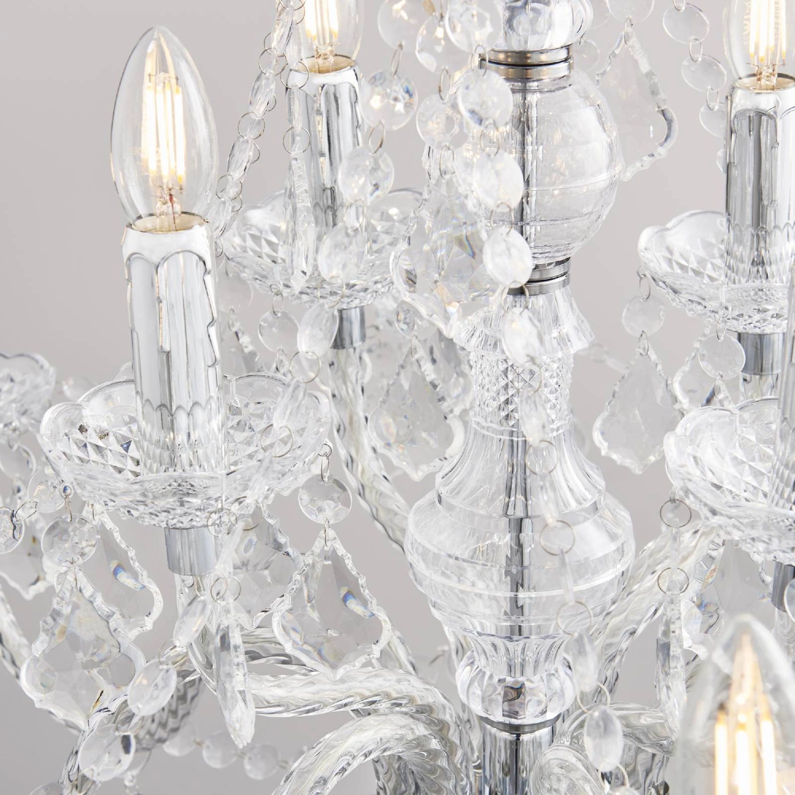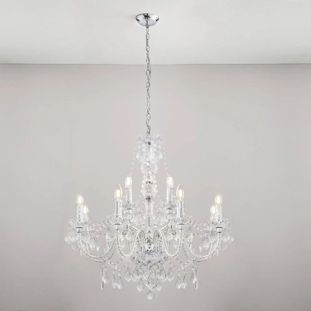 Lampa Clarence wyróżnia się 12 źródłami światła, które zapewniają niezwykle przyjemne i równomierne oświetlenie. Dzięki trzonkowi E14 oraz maksymalnej mocy wynoszącej 60 W, jesteśmy w stanie dostosować intensywność oświetlenia do naszych potrzeb. Idealna do salonu, jadalni, a także sypialni, stworzy nastrojową aurę zarówno podczas codziennych aktywności, jak i specjalnych okazji.