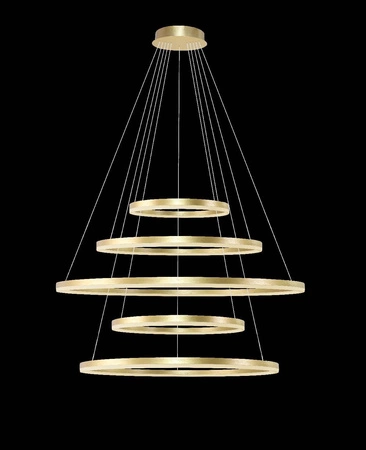 Żyrandol HALO PENDANT 150+120+100+80+60 złoty (AZ5352) od marki Azzardo to idealna propozycja dla osób poszukujących eleganckiego i nowoczesnego oświetlenia. Ten żyrandol wyróżnia się nie tylko pięknym, złotym kolorem, ale również wyjątkowym stylem, który doskonale wpisuje się w aranżacje inspirowane art deco. Zastosowany w nim materiał, jakim jest aluminium w połączeniu z nowoczesnym akrylem, dodaje mu lekkości oraz funkcjonalności. Żyrandol świetnie komponuje się w różnych pomieszczeniach, takich jak salon, jadalnia czy biuro, tworząc atmosferę pełną elegancji i nowoczesności.