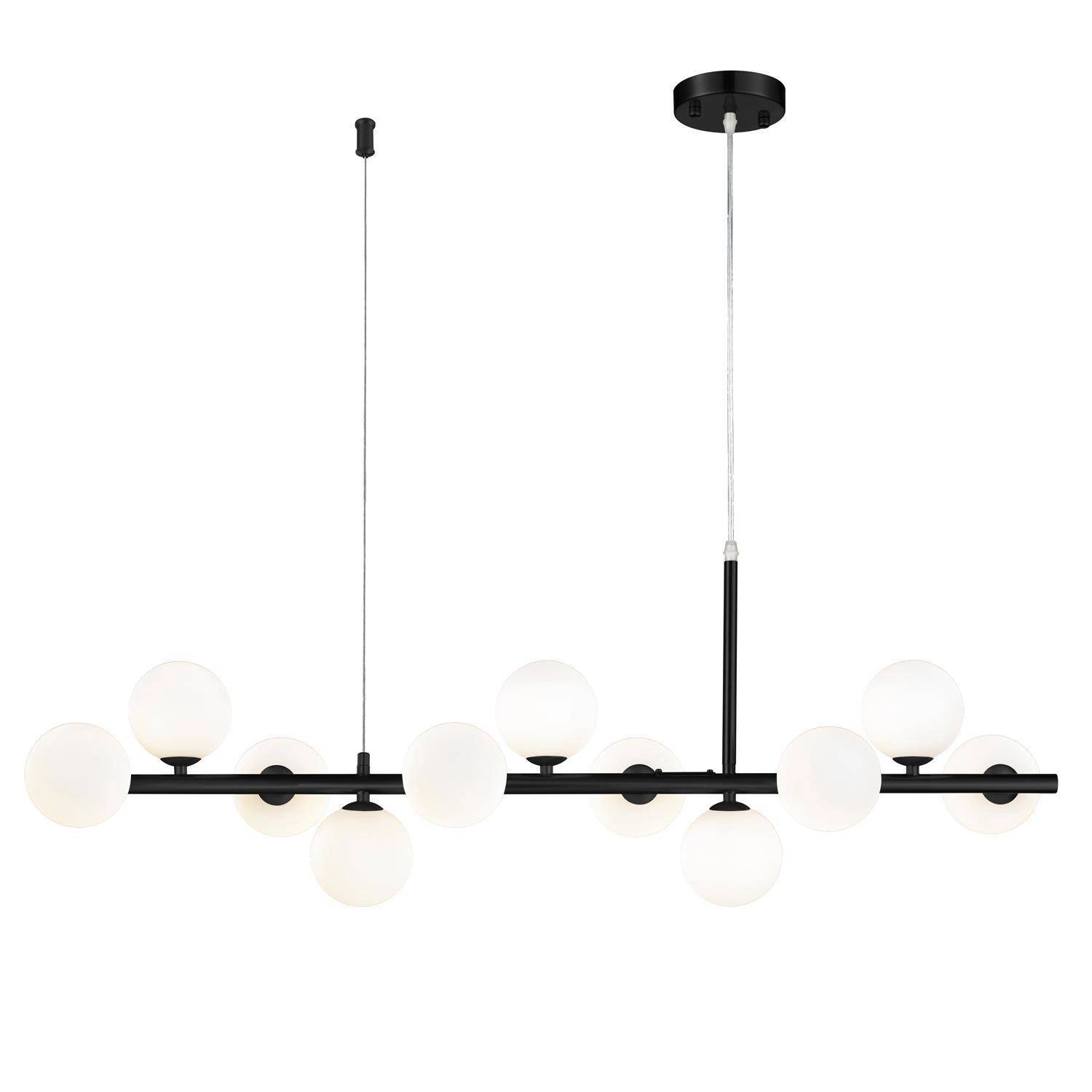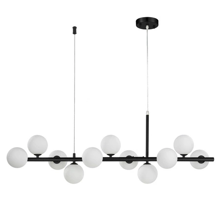 Ponadto, ta lampa wisząca o długości 100 cm wykonana jest z wysokiej jakości materiałów, takich jak żelazo i szkło, co gwarantuje jej trwałość oraz estetykę. Biały mleczny klosz doskonale rozprasza światło, tworząc przyjemną atmosferę w każdym wnętrzu. Dzięki regulacji wysokości, lampa może być dostosowana do konkretnego miejsca, co czyni ją idealnym rozwiązaniem do zawieszenia nad stołem w jadalni czy wyspą w kuchni.