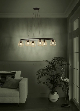Lampa wisząca JAZMINIA 1 czarna jest wyposażona w 6 trzonków E27, co pozwala na wybór odpowiednich źródeł światła według własnych potrzeb. Maksymalna moc, jaką można zastosować, wynosi 40W. Warto zaznaczyć, że źródło światła w komplecie nie jest dołączone, jednak możliwość dostosowania typu żarówek daje pełną swobodę w aranżacji. Dzięki temu możemy stworzyć klimatyczne oświetlenie, które idealnie wpasuje się w nastrój panujący w pomieszczeniu.