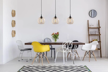 Ze względu na swój klasyczny styl, lampa wisząca CUBUS z łatwością odnajdzie swoje miejsce w różnych stylach aranżacyjnych. Niezależnie od tego, czy preferujesz nowoczesne, minimalistyczne wnętrza, czy też bogato zdobione przestrzenie w stylu retro, ta lampa z pewnością doda im charakteru. Jej ciepłe, bursztynowe światło otuli Twoją jadalnię, tworząc idealne warunki do wspólnego spędzania czasu.