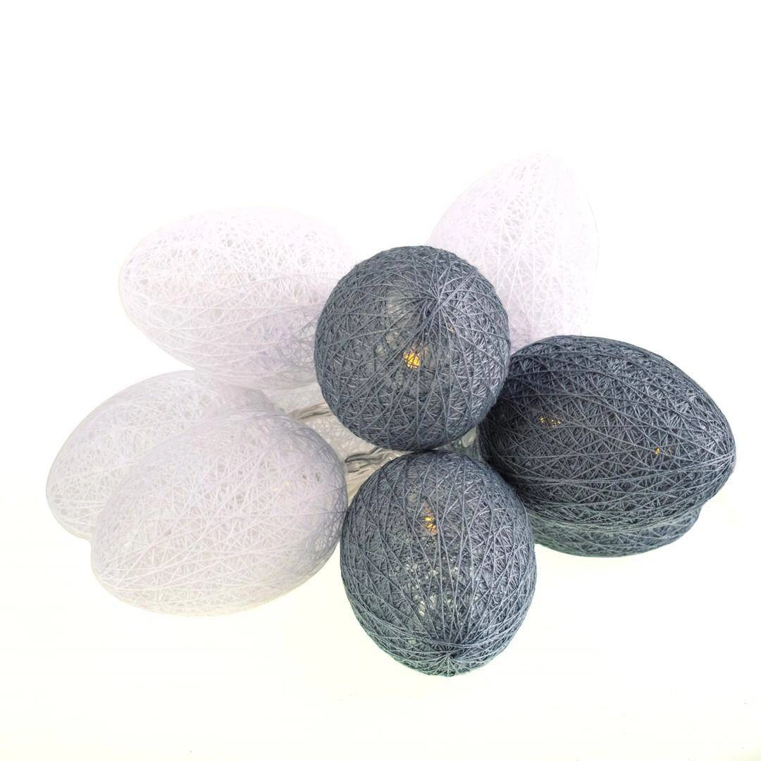 BAWEŁNIANE JAJKA WIELKANOCNE LED BIŁO-SZARE (EKD4918) od Eko-Light to niezwykła dekoracja, która doda uroku każdemu wnętrzu podczas świątecznego okresu. Te urokliwe jajka wykonane z bawełny prezentują się w eleganckim biłozarym kolorze, doskonale wpisując się w wiosenną atmosferę. Każde jajko jest podświetlane przez delikatne, ciepłe światło, które tworzy przytulny klimat, idealny do rodzinnych spotkań oraz wielkanocnych celebracji.