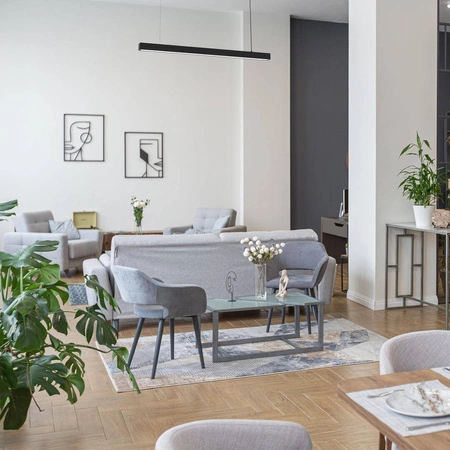 Lampa LUNGO to nie tylko atrakcyjna forma, ale także funkcjonalność. Wykonana z wysokiej jakości materiałów - metalu i tworzywa sztucznego - zapewnia długą żywotność oraz łatwość w utrzymaniu czystości. Jej stopień ochrony IP20 oraz zastosowanie wewnętrzne sprawia, że jest to produkt stworzony z myślą o używaniu w pomieszczeniach, takich jak salon, przedpokój czy jadalnia. Czarne wykończenie nadaje lampie elegancji, co czyni ją idealnym wyborem do wnętrz urządzonych w stylu nowoczesnym i skandynawskim.