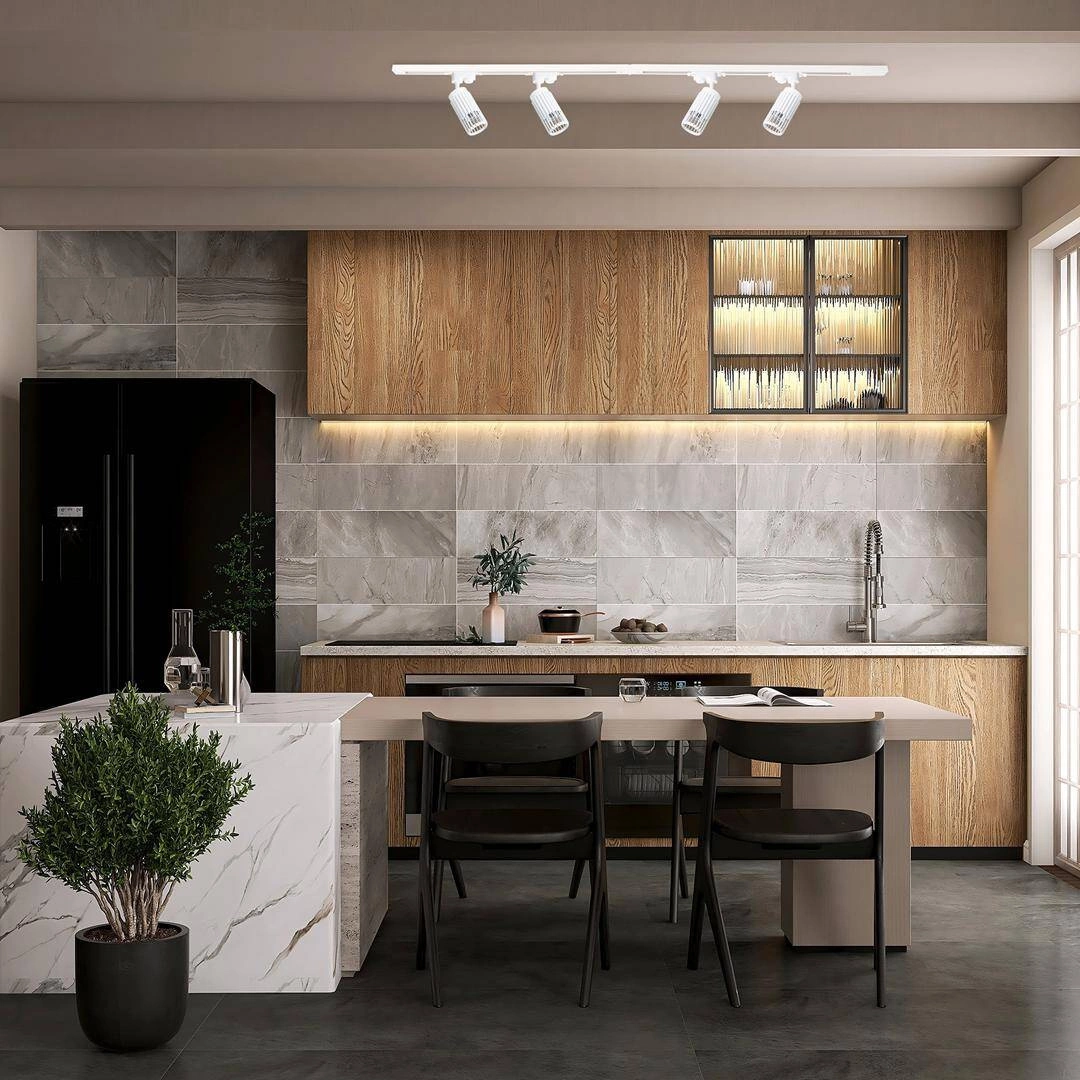 Wysoka jakość wykonania oraz nowoczesny styl VERTICAL WHITE TRACK sprawiają, że jest to oprawa stworzona dla osób, które cenią sobie elegancję oraz funkcjonalność. Idealnie sprawdzi się jako oświetlenie nad wyspę kuchenną czy stół w jadalni, tworząc odpowiednie warunki do wspólnego biesiadowania. Jej uniwersalny design pozwala na łatwe dopasowanie do różnych stylów wnętrz, od skandynawskiego po industrialny.