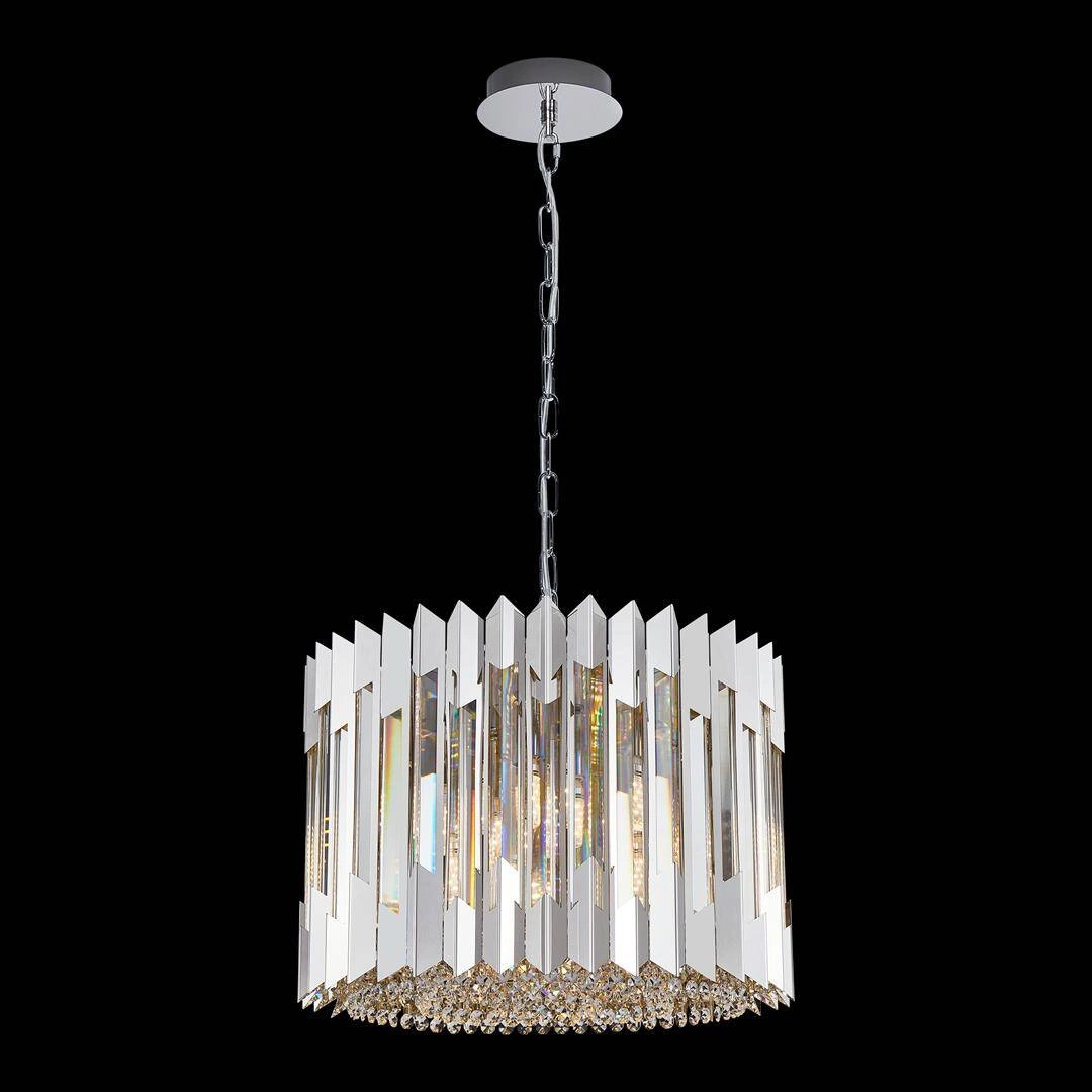Żyrandol RITZ charakteryzuje się niepowtarzalnym designem, który przyciąga wzrok i dodaje luksusowego charakteru. Wykonany z wysokiej jakości kryształu oraz w kolorze chromu, ten model stanowi doskonały przykład klasycznych żyrandoli glamour. W połączeniu z siedmioma źródłami światła E14, RITZ nie tylko świetnie wygląda, ale również zapewnia odpowiednie oświetlenie, które zachwyci każdego gościa.