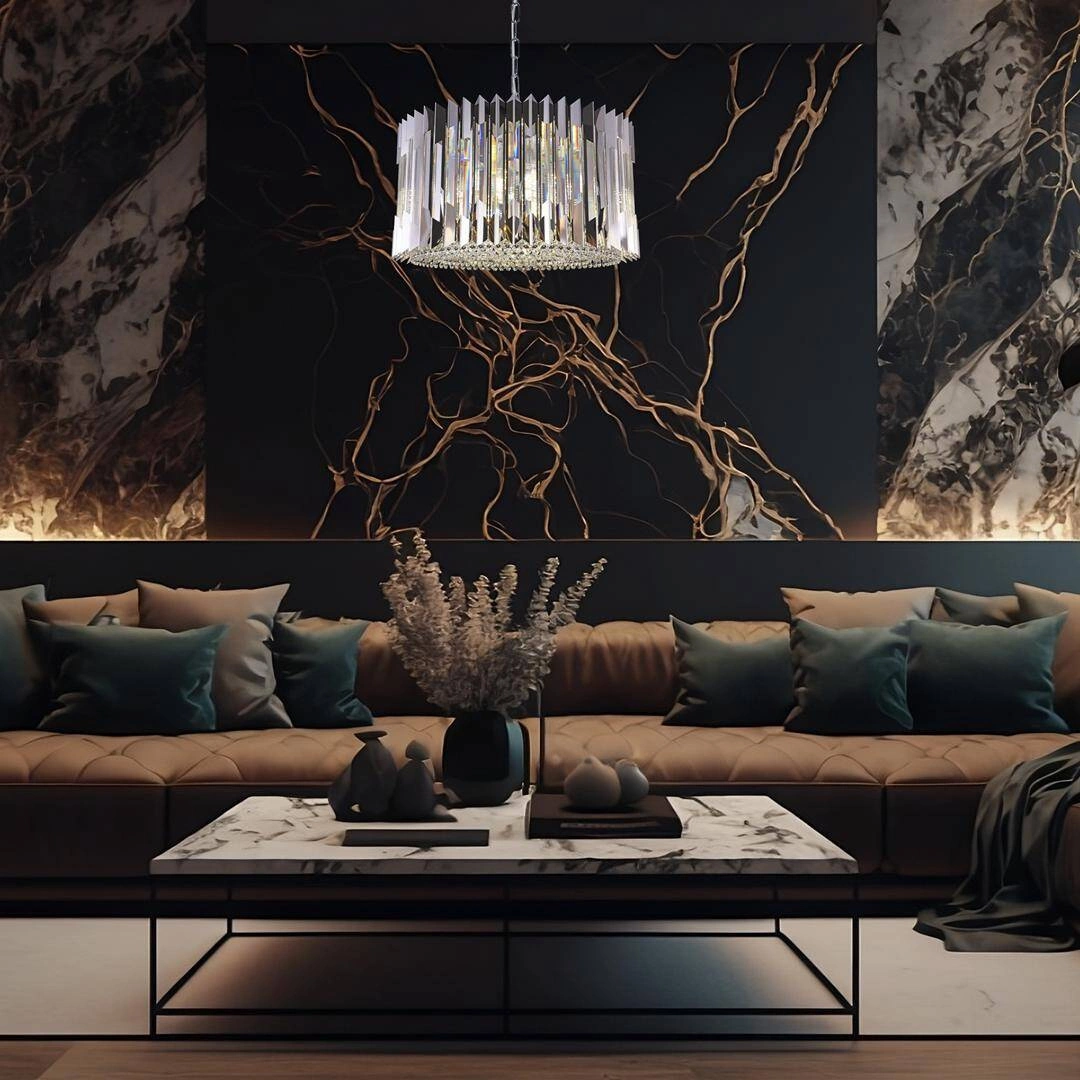 Lampa ta, należy do serii Ritz i łączy w sobie cechy stylów Hampton oraz Glamour. Charakteryzuje się chromowym wykończeniem, które nadaje jej nowoczesności i elegancji. Dodatkowo, efektowne kryształowe detale podkreślają luksusowy charakter tego żyrandola. Harmonijnie wpisuje się w aranżację salonu, stanowiąc idealny dodatek do pomieszczeń urządzonych w stonowanych kolorach oraz luksusowych stylizacjach.