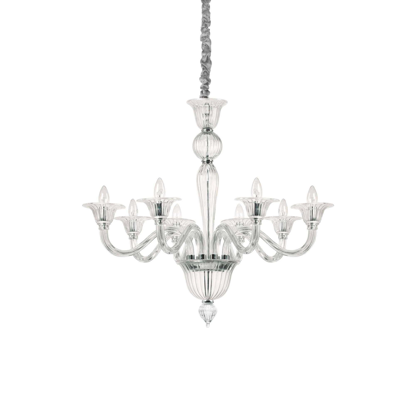 Żyrandol BRIGITTA to wyjątkowe oświetlenie marki Ideal Lux, które doskonale wpisuje się w stylistykę retro oraz rustykalną. Model BRIGITTA_SP8_TRASPARENTE zachwyca swoim eleganckim designem i starannym wykonaniem, co czyni go idealnym wyborem dla miłośników klasycznego stylu. Lampa w kolorze przezroczystym i chromowanym błyszczy i odbija światło, tworząc niepowtarzalną atmosferę w każdym wnętrzu.