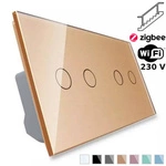 Włącznik dotykowy podwójny + podwójny EC Wi-Fi z podwójnym panelem szklanym w kolorze złotym 2 + 2 (VL-C7022EC-63) LIVOLO